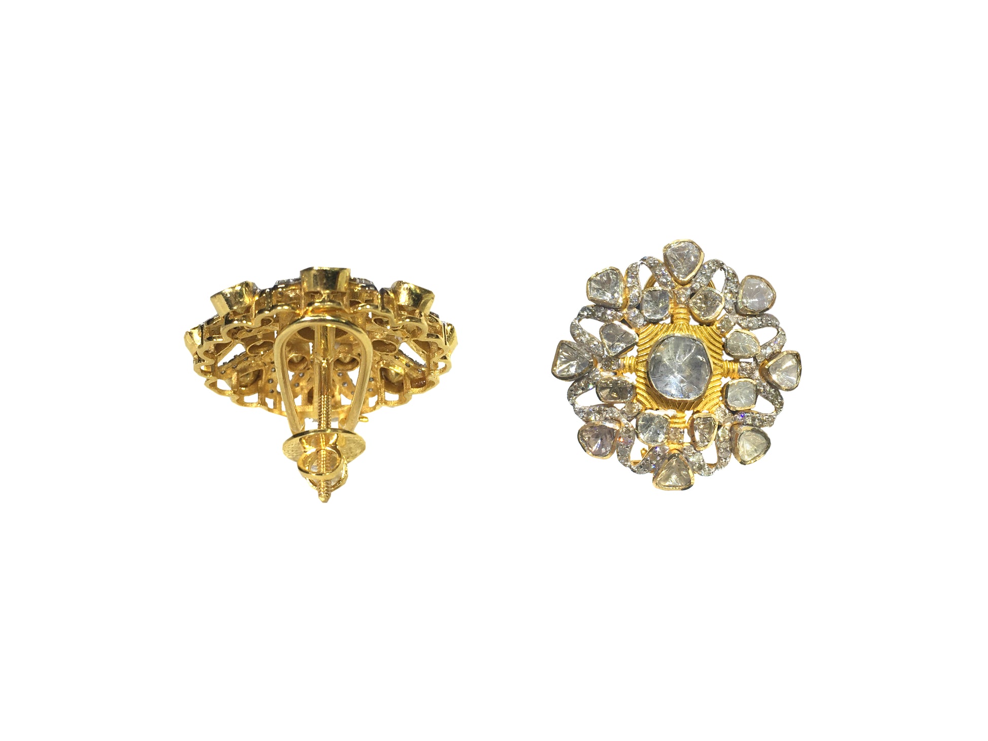 The DIAMOND STUDDS are a stunning addition to any jewelry collection. Made of 14K gold and featuring a total of 1.59 carats of diamonds and 2.91 carats of polki, these earrings weigh 15.29 grams. With their exquisite design and high-quality materials, these DIAMOND STUDDS are both beautiful and luxurious.