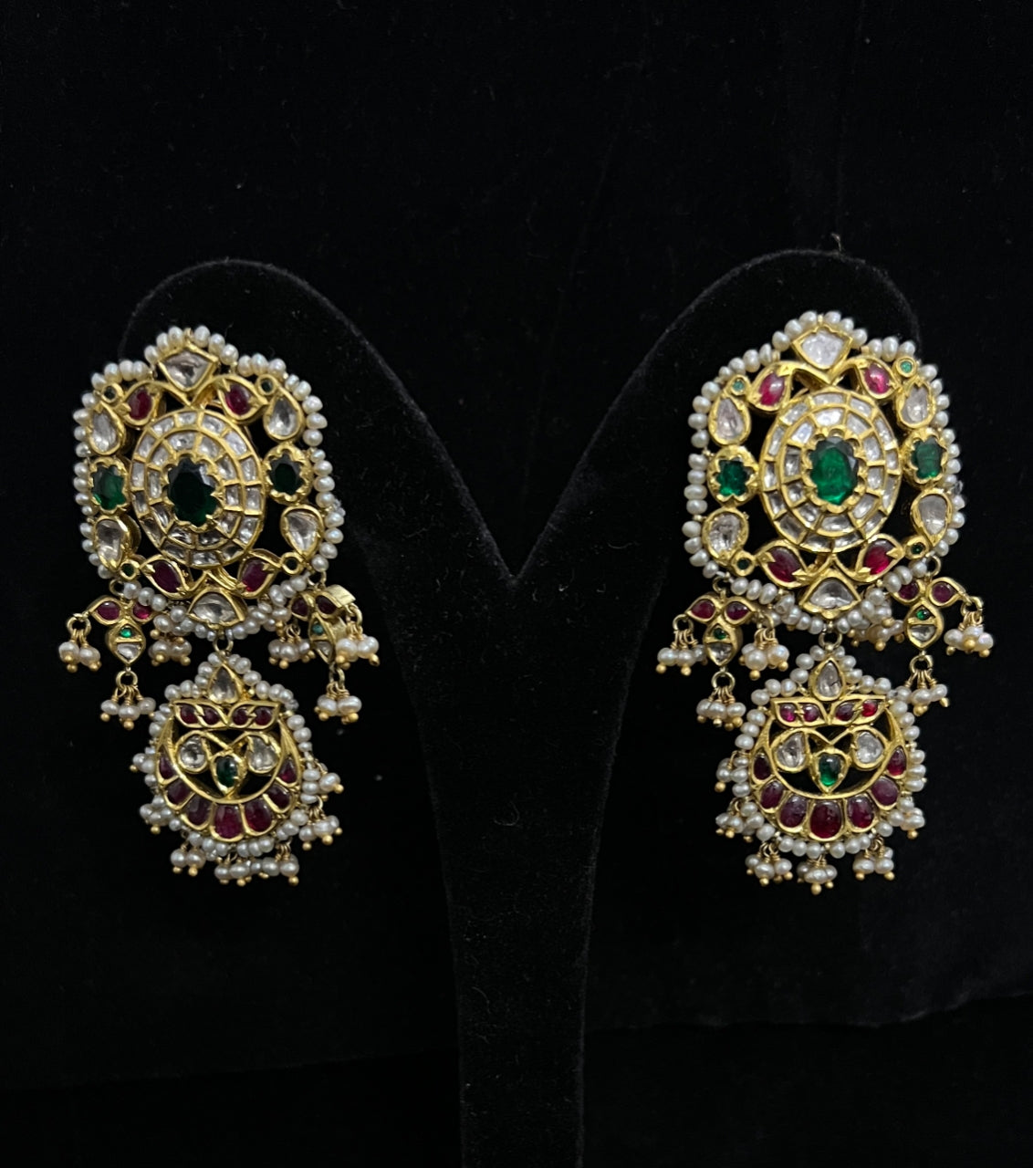 The vibrant red ruby gemstones complement the deep green emerald stones to create a truly eye-catching piece.